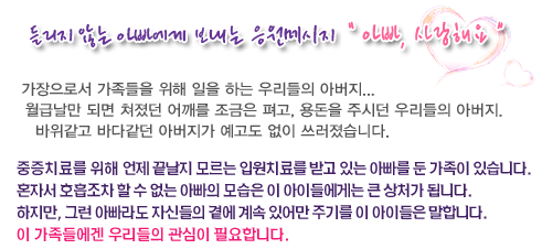 성함 옆에 (가족)이라고 적어주시면, 쓰러진 가장으로 경제적 어려움에 처해있는 가족들에게 전액 지원됩니다.