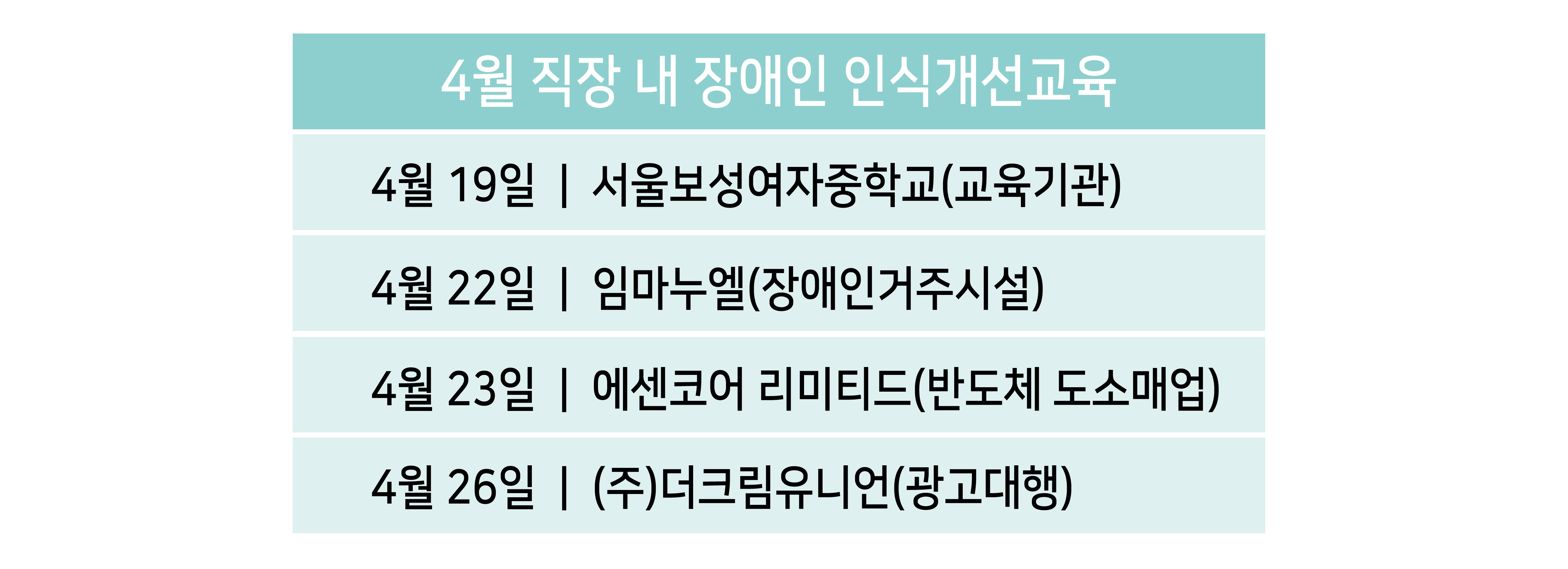 다양한 장소에서 많은 사람들에게 장애인식개선교육을 진행한 4월이었습니다.^^