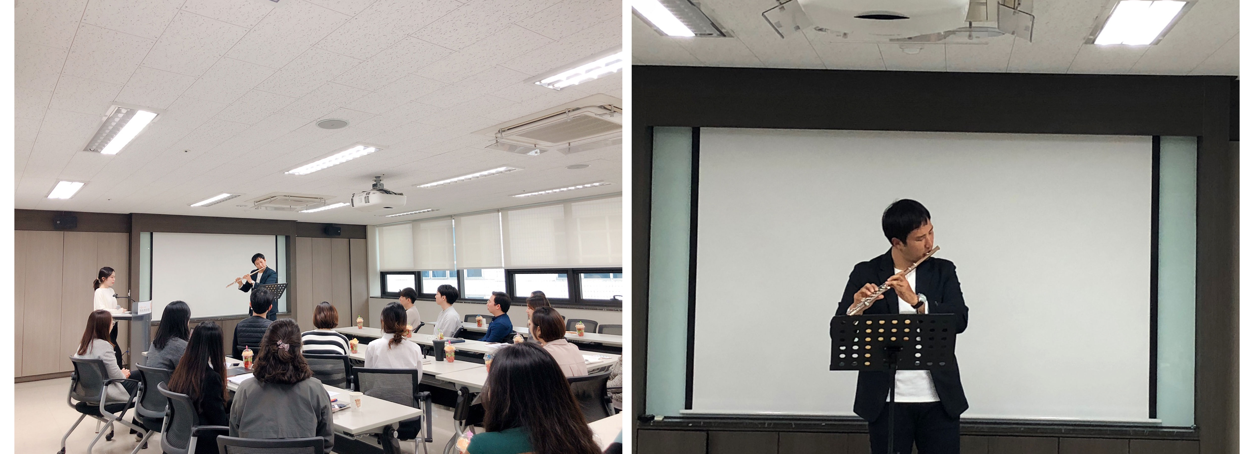 함께 일하는 직원들에게 김동균강사의 멋진 강연과 플루트의 연주를 선보이며