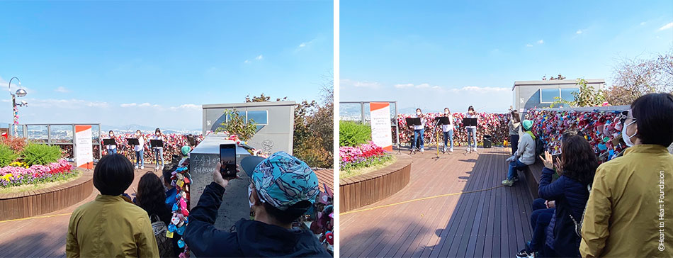‘함께 연주하는 언니들과 남산케이블카에서 사람들에게 연주를 들려줄 수 있어서 신나고 좋아요 ! 앞으로 많은 사람들에게 더 많은 자리에서 연주하고 싶어요!’ - 서민교 단