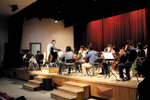 오후 4시 반. 드디어 연습이 시작됐다. 박성호 지휘자가 아이들 눈을 일일이 마주치며 "자, 다 같이 갈게요"라고 외쳤다. 아이들이 일순 긴장하더니 바이올린, 첼로, 플루트, 트롬본 등 각자의 악기를 불고 키며 어우러진 소리를 내기 시작했다. 신세계 교향곡, 운명 교향곡 등 상상을 초월한 곡들이 흘러나왔다.