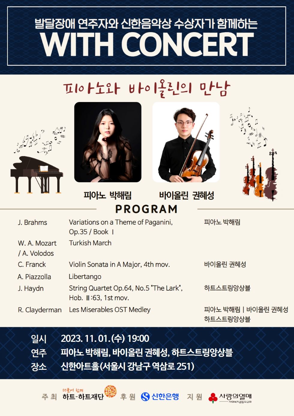 하트하트오케스트라X신한은행, WITH CONCERT ‘피아노와 바이올린의 만남’ 관람 신청 안내